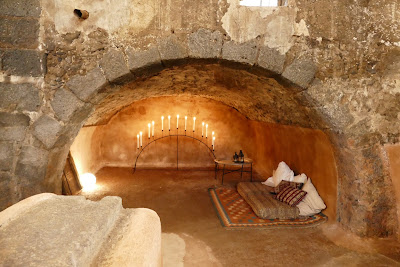 Upstairs we were treated to an English afternoon tea Sicilian style. The upper level is where the 'grape stomping' used to take place where the grapes would be crushed by having barefoot participants repeatedly stomping on them to release their juices that would drain on the slightly sloped floor to the lower level where fermentation would then begin.